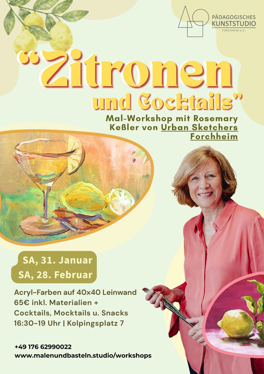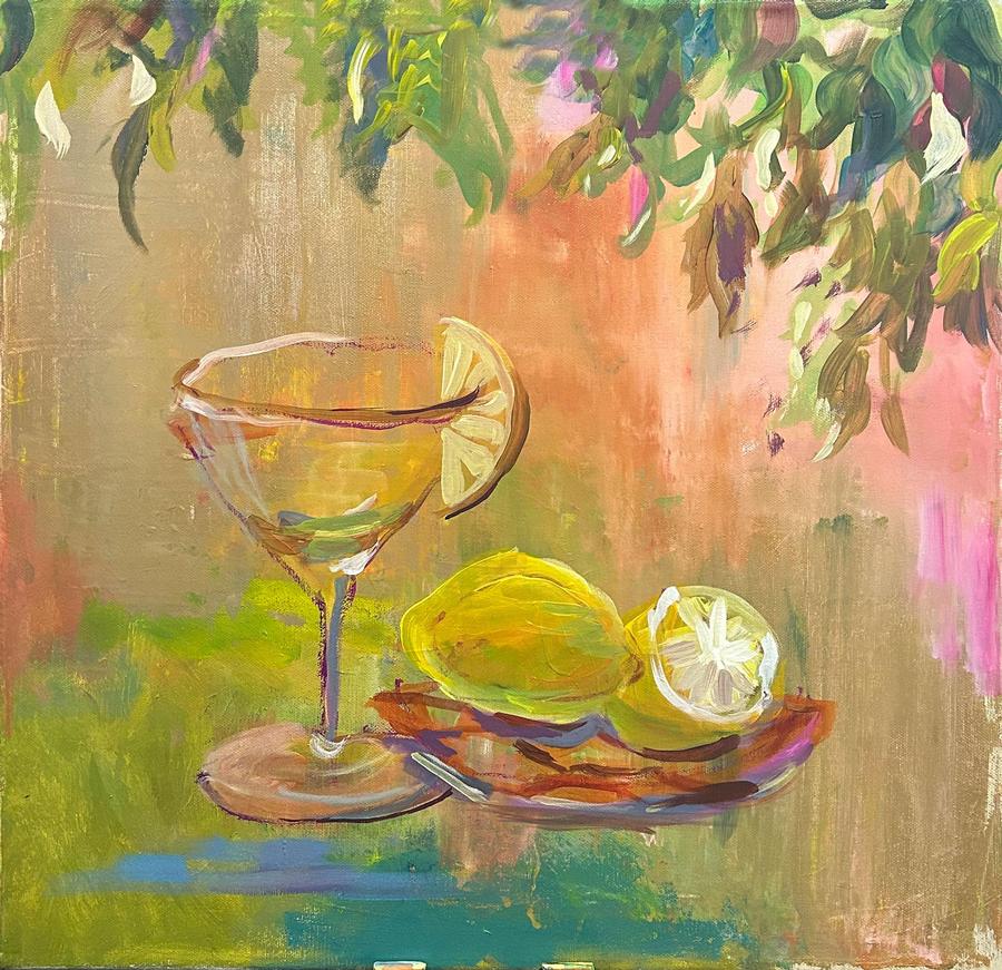 An diesem späten Samstagnachmittag dreht sich alles um sonnige Zitronen, spritzige Cocktails, Mocktails und das herrlich entspannte Sommergefühl, das man am liebsten festhalten würde. Genau das tun wir: auf Papier oder Leinwand (40 × 40 cm), mit kräftigen Farben, guter Laune – und dem passenden Getränk in der Hand.