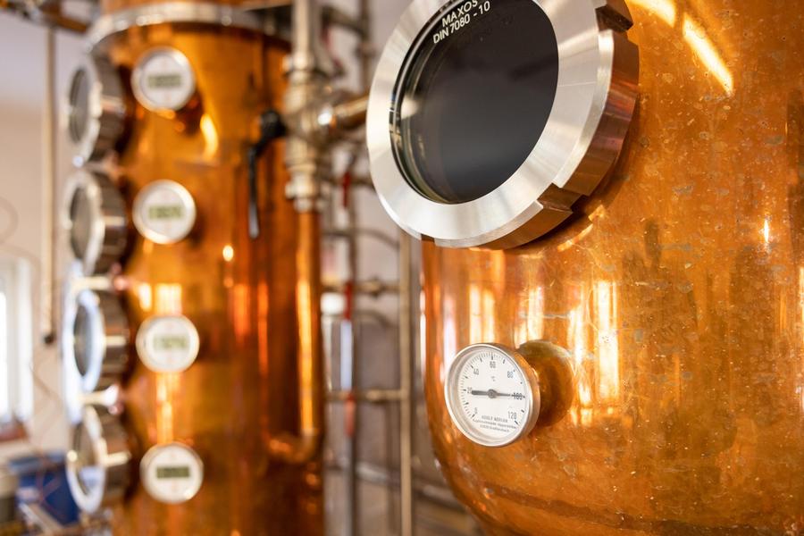 Sie lernen, wie unsere Brennanlage funktioniert und wie aus Obst und anderen Rohstoffen das fertige Destillat entsteht.