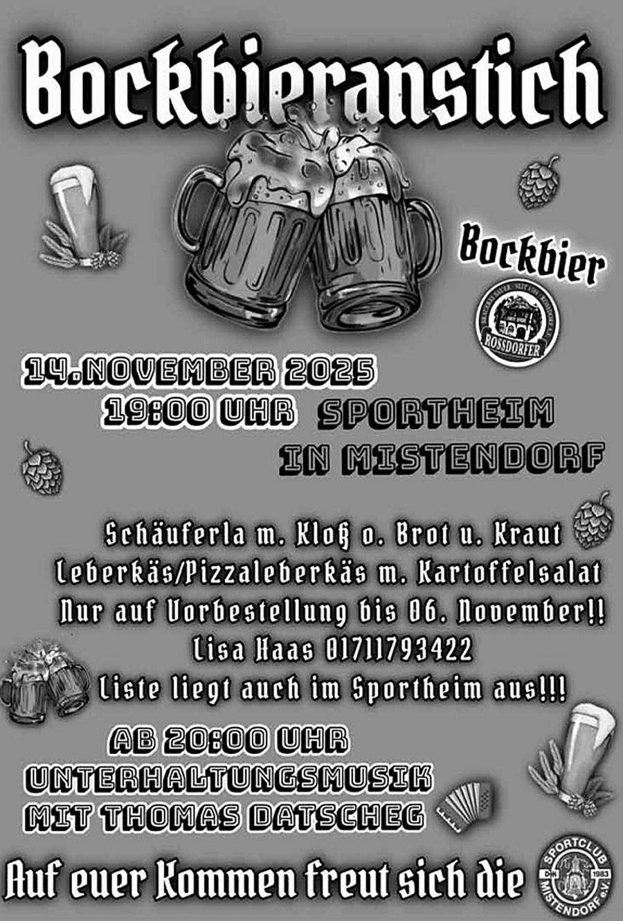 Veranstaltungsort: Sportheim DJK Mistendorf, Flurweg 18, 96129 Strullendorf