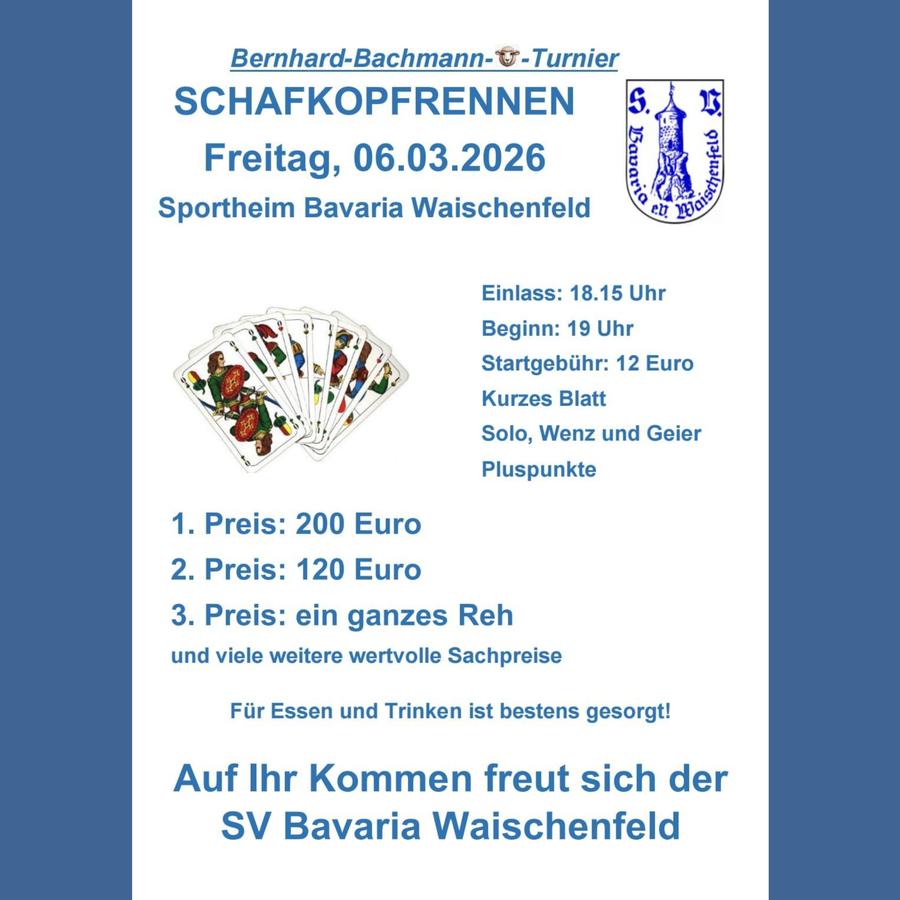 Schafkopfrennen am Freitag, 23.02.24 im Sportheim des SV Bavaria Waischenfeld