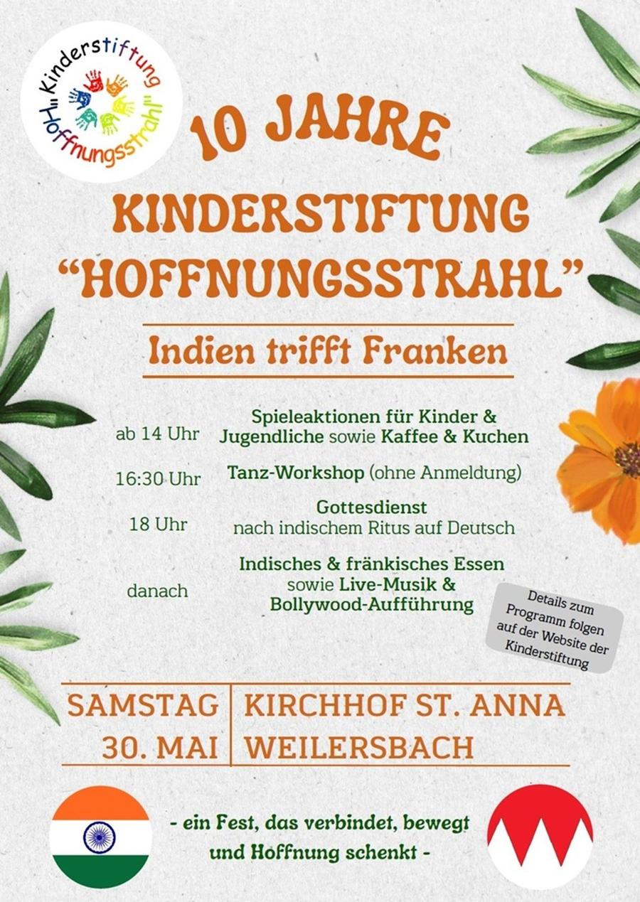 Anlässlich des 10jährigen Bestehen der Kinderstiftung Hoffnungsstrahl findet ab 14 Uhr ein bunter Nachmittag für Kinder und Jugendliche statt.