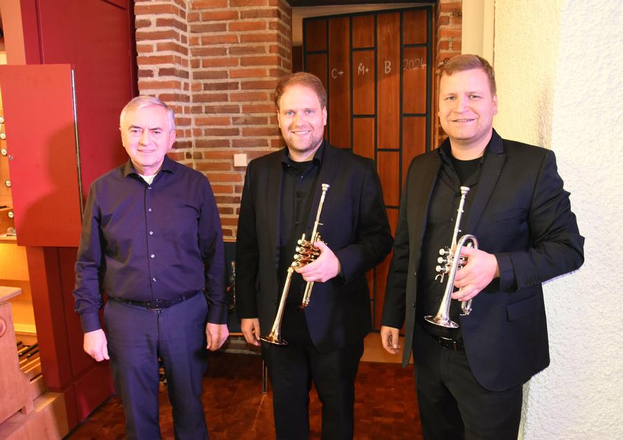 Die Ausführenden sind Sebastian Saffer und Sebastian Hensiek (Trompeten) sowie Georg Schäffner an der Orgel.