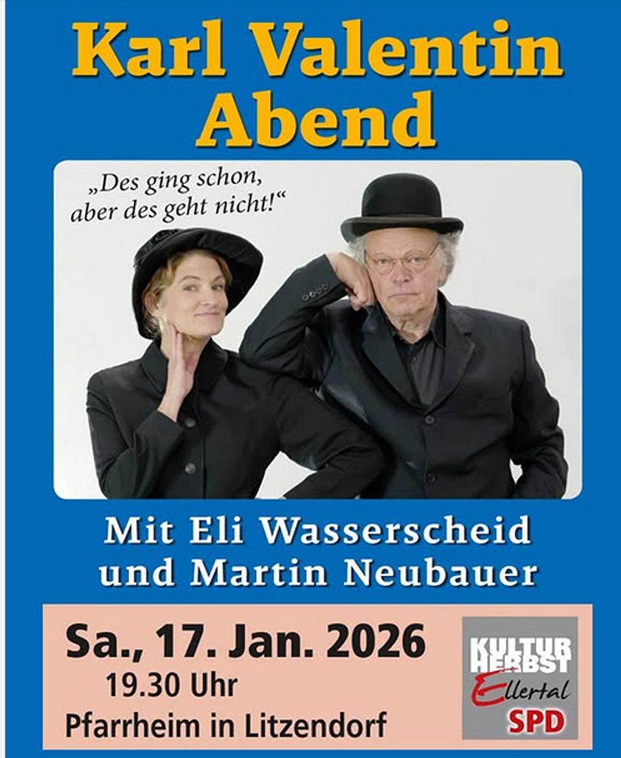Der SPD Kulturherbst Ellertal lädt am Samstag, 17. Januar 2026, zu einem besonderen Theaterabend in den Litzendorfer Pfarrsaal ein. Beginn ist um 19.30 Uhr.