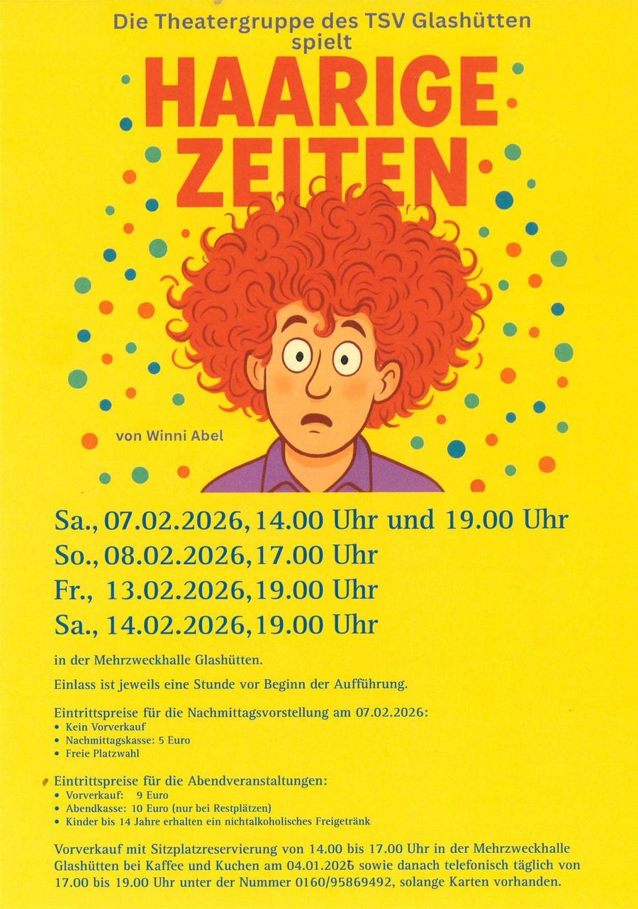Am 04.01.26 Vorverkauf von 14.00 - 17.00 Uhr in der Mehrzweckhalle Glashütten bei Kaffee und Kuchen
