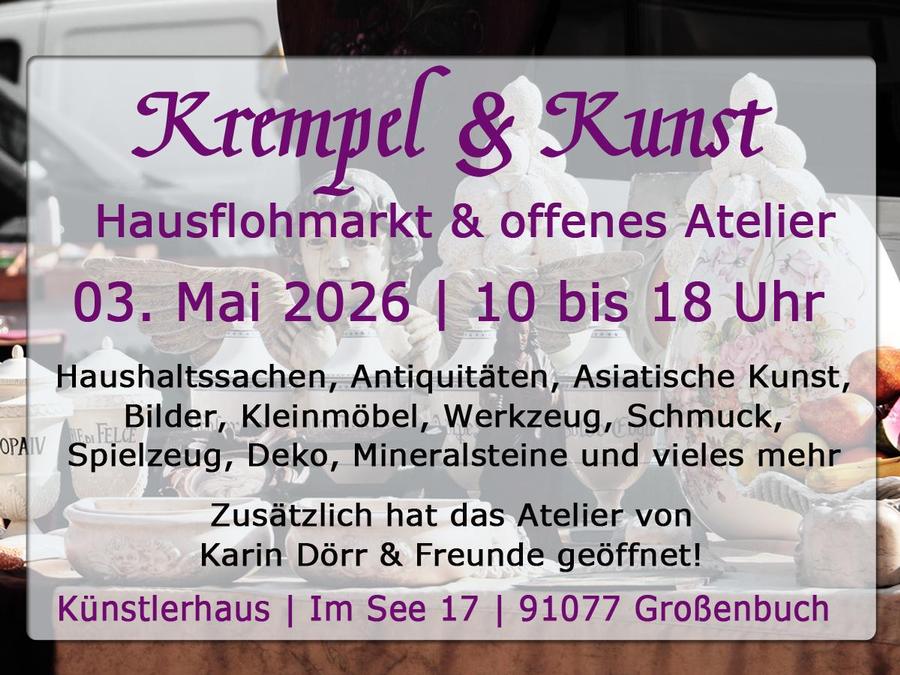 Stöbern sie entspannt zwischen Haushaltssachen, Antiquitäten, Gartendeko, Asiatische Kunst, Kleinmöbel, Bilder, Mineralsteinen, Textilien, Deko, Spielzeug, Werkzeug und vielen mehr in unserm Künstlerhaus beim Hausflohmarkt.