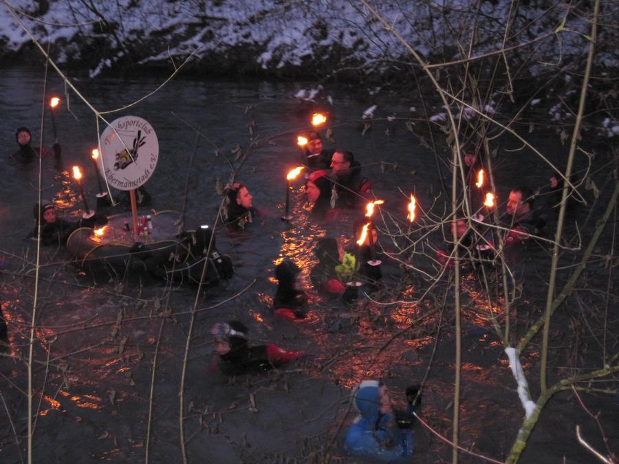 Das traditionelle Dreikönigsschwimmen des Tauchsportclubs Ebermannstadt startet am Familienbad EbserMare in Rothenbühl. Nach etwa 2,5 km ist der 1. Ausstieg am Streichwehr und der 2. Ausstieg an der Brücke Zum Breitenbach.