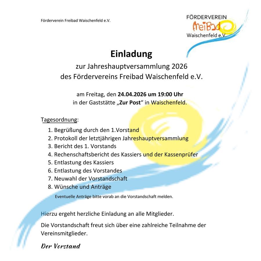 Versammlung Förderverein Freibad Waischenfeld