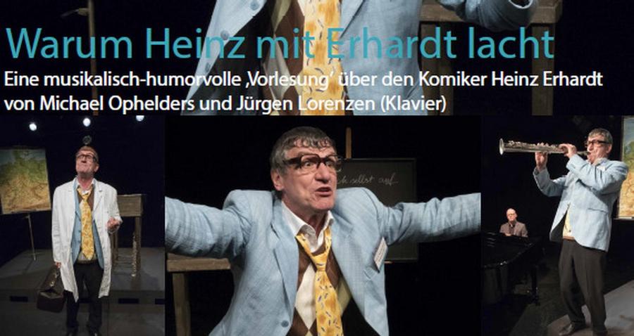 Hinter dem Titel Warum Heinz mit Erhardt lacht verbirgt sich eine musikalisch-humorvolle Hommage von und mit Schauspieler Michael Ophelders. In einer kurzweiligen abendfüllenden Revue referiert, rezitiert und deklamiert Michael Ophelders Texte des unvergessenen Heinz Erhardt: vom Blümchen über die Made bis zum Ritter Fips. Zum anderen sind aber auch Lieder von der Tante Hedwig über das Wicke-Wacke-Wucke Lied bis hin zum Bobby Schick zu hören, die dem geneigten Zuhörer neben Leben und Wirken auch die oft vernachlässigte musikalische Seite des berühmten Dichters Heinz Erhardt näherbringen. Freuen Sie sich auf einen amüsanten Abend mit Bildungsanspruch frei nach dem Motto: Wer sich selbst auf den Arm nimmt, erspart anderen die Arbeit.