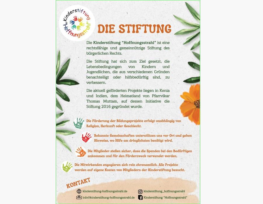 Kontakt: info@kinderstiftung-hoffnungsstrahl.de