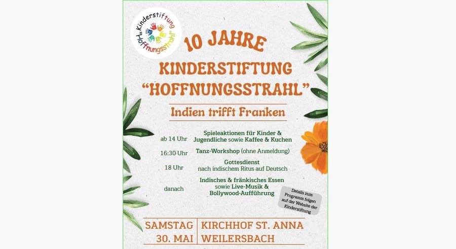 Anlässlich des 10jährigen Bestehen der Kinderstiftung Hoffnungsstrahl findet ab 14 Uhr ein bunter Nachmittag für Kinder und Jugendliche statt.