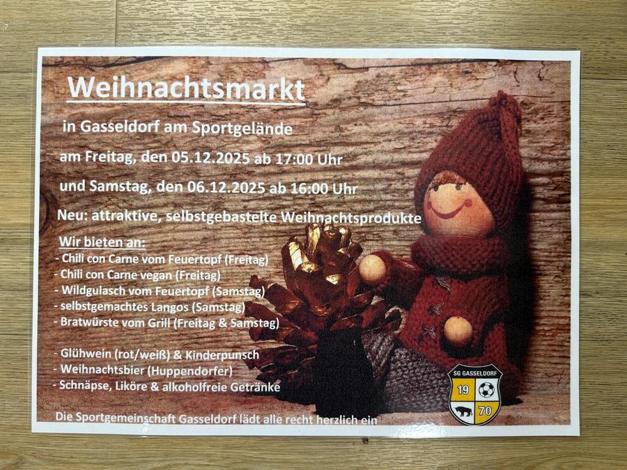 Weihnachtsmarkt in Gasseldorf am Sportgelände am 05. und 06.12.2025.