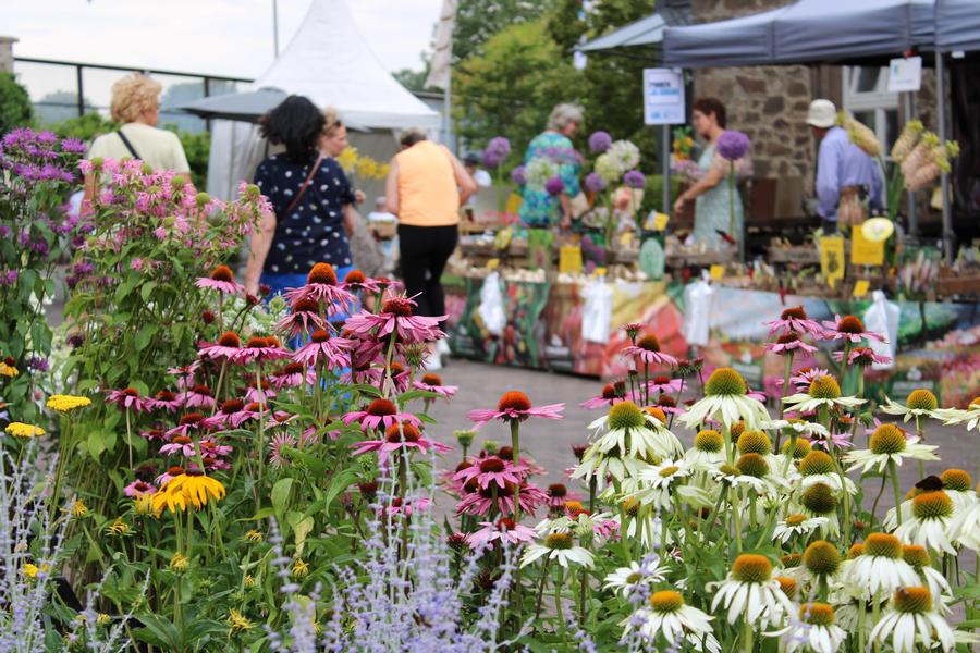 Vor der romantischen Kulisse der historischen Fachwerkhäuser präsentieren Aussteller aus verschiedenen Regionen eine große Auswahl an Pflanzen, Gartenaccessoires, Kunsthandwerk und dekorativen Ideen für Haus und Garten. Ergänzt wird das Angebot unter anderem durch handgefertigte Schieferprodukte für Haus, Wohnung und Garten – darunter Schieferuhren, Untersetzer, Blumen-und Gartenspieße, Hausnummern sowie viele weitere dekorative Stücke.