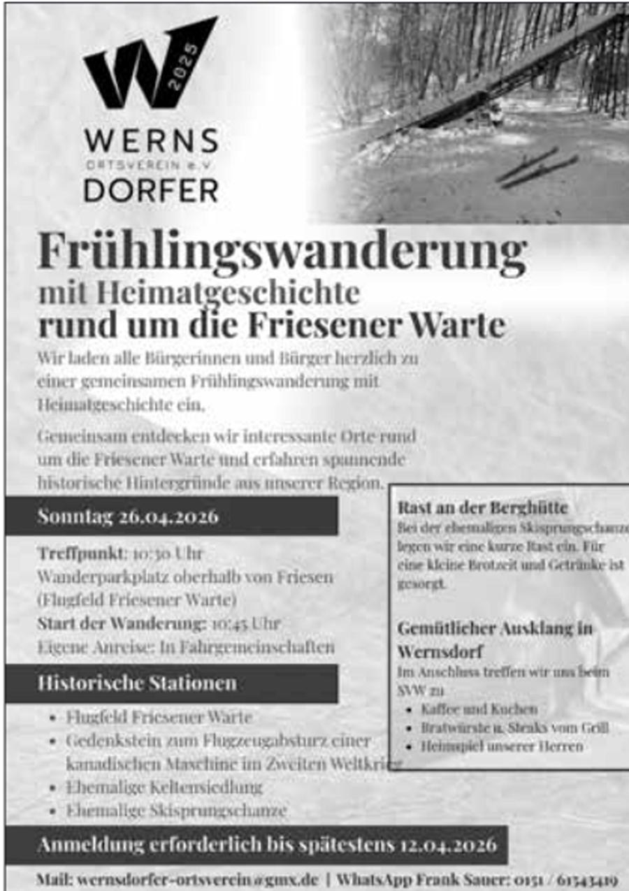 Anmeldung erforderlich bis spätestens 12.04.2026 unter wernsdorfer-ortsverein@gmx.de oder per WhatsApp unter 0151 - 61543419