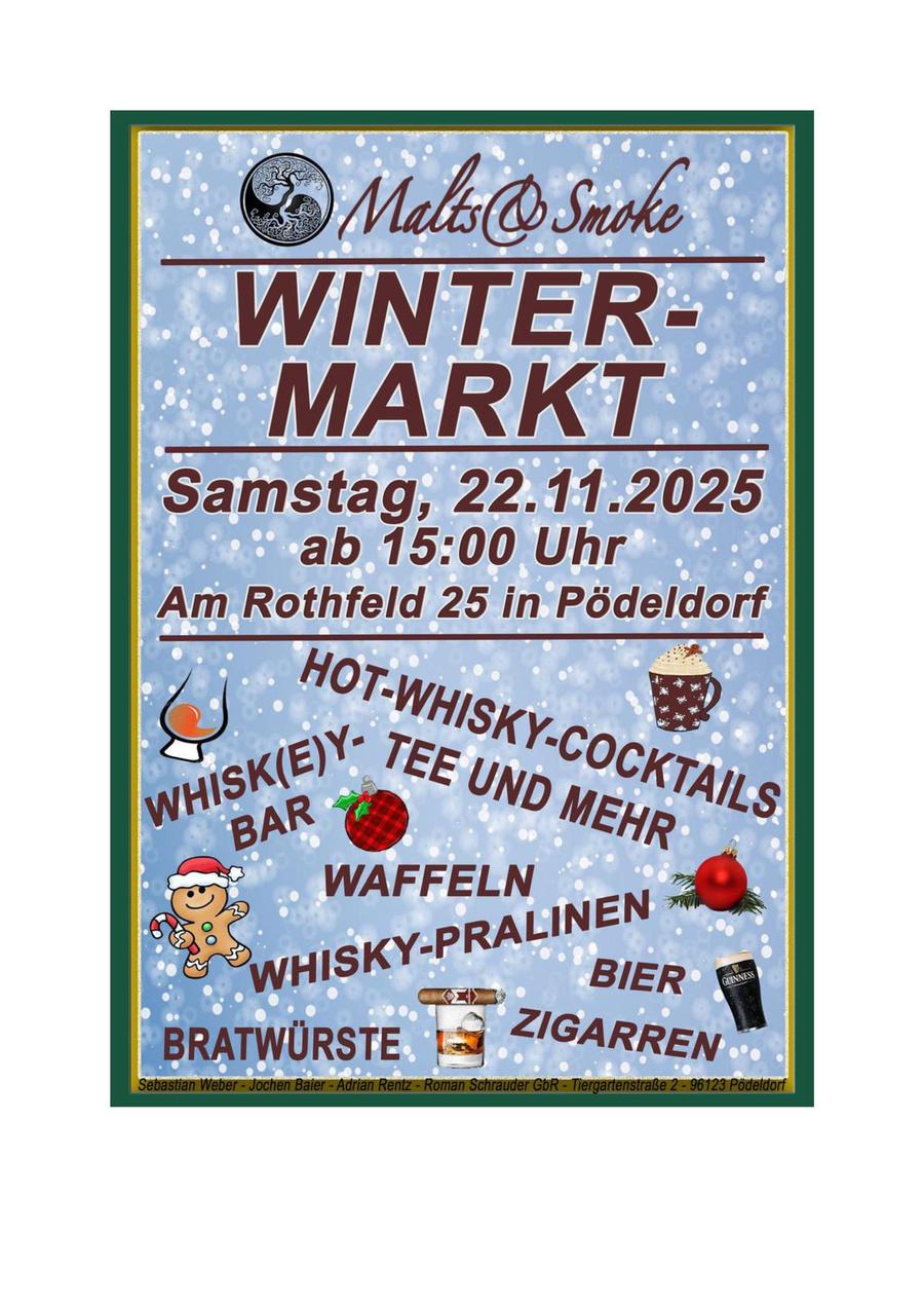 Veranstaltungsort: Malts & Smoke Tasting-Room Pödeldorf, Am Rothfeld 25, 96123 Litzendorf