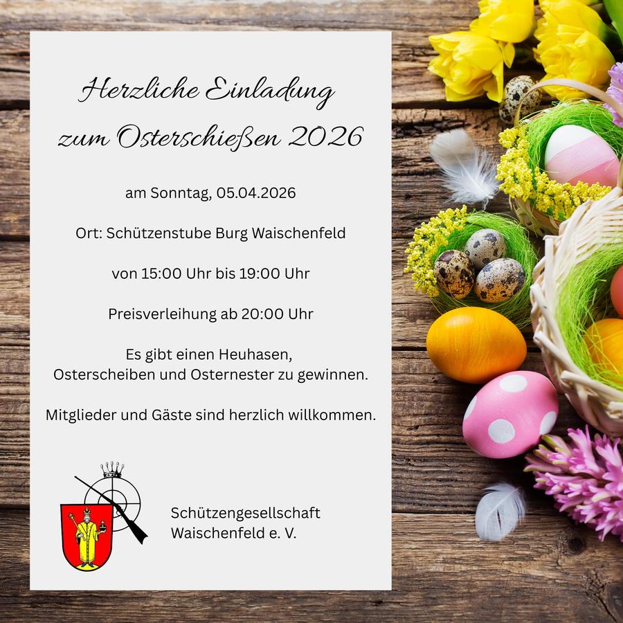 Osterschießen für Jedermann (auch für Gäste) des Schützenverein Waischenfeld in der Schützenstube der Burg Waischenfeld