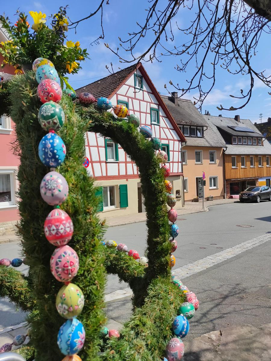 Direkt nach dem Osterbrunnenfest in der Vorstadt wird in Waischenfeld der zweite (kleine, aber feine) Osterbrunnen am Hinteren Tor in der Hauptstraße geschmückt.