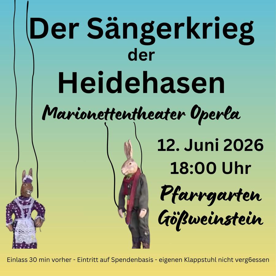 Auf ihrer mobilen Marionettentheater-Bühne entbrennt der Sängerkrieg der Heidehasen. Mit den zauberhaften Marionetten des Operla aus Bayreuth erleben wir, wie bei den Heidehasen - wie jedes Jahr - der beste Sänger im Rahmen eines Wettstreits gekürt werden soll. Doch dieses Mal winkt anlässlich des 100. Todestages ihres Vorfahren Mümmelmann ein besonderer Preis: Die Prinzessin, Tochter von König Lamprecht dem Siebenten, gebührt dem Sieger zur Frau. Ein aussichtsreicher Kandidat ist der junge Hase Lodengrün. Aber Direktor Wackelohr, der den Wettbewerb selbst gewinnen möchte, und der Minister für Hasengesang versuchen, dessen Sieg mit allen Mitteln zu verhindern.