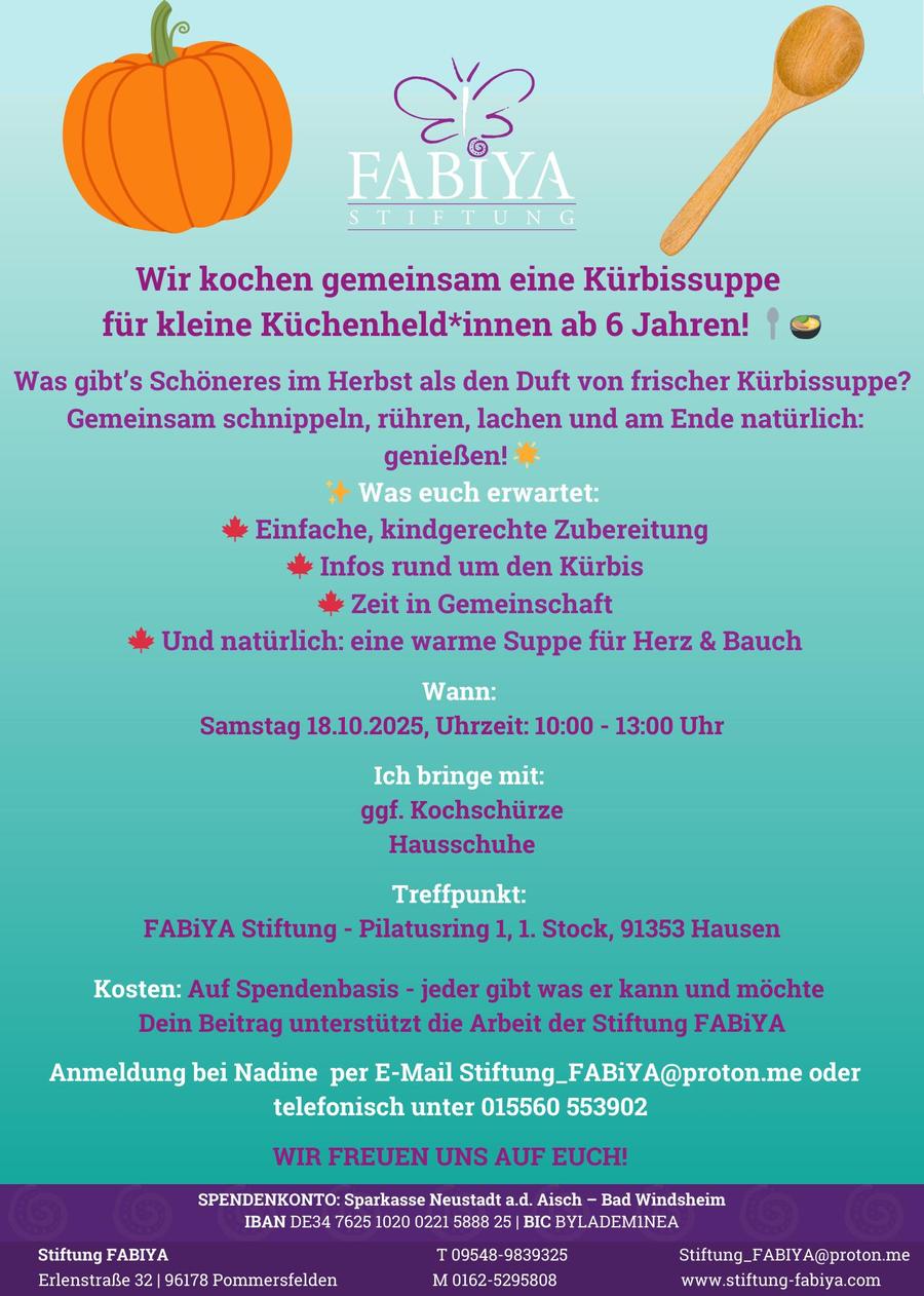 Wo: FABIYA Stiftung, Pilatusring 1, 1. Stock, 91353 Hausen