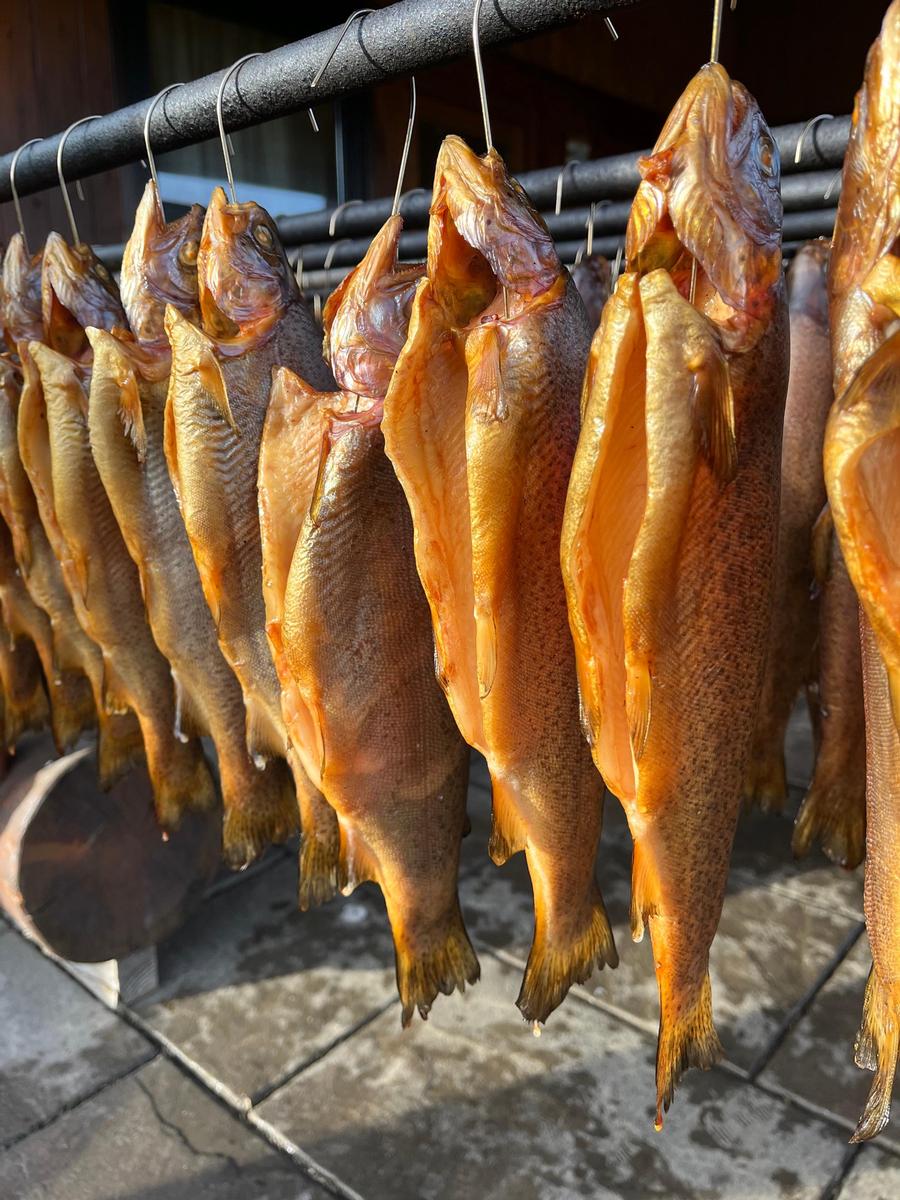 Hauptattraktionen sind die fränkischen Forellen - frisch vom Grill oder aus der eigenen Räucherei. Zusätzlich haben wir hausgemachte Fisch-Küchla, Kibbelinge & Tintenfisch-Sticks.